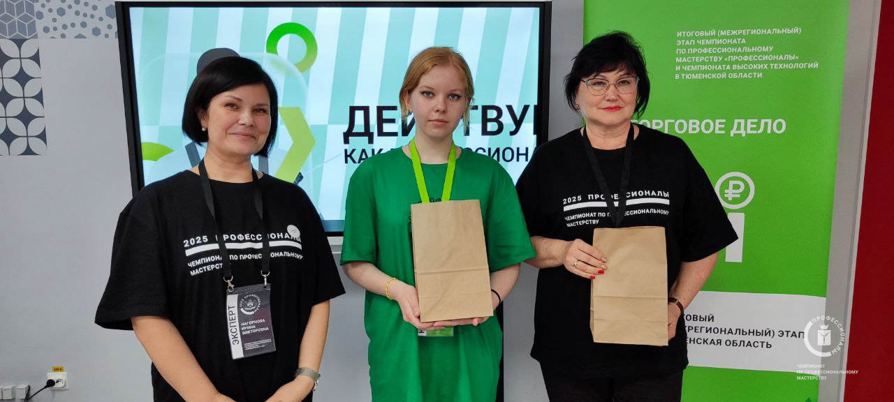 28 апреля в Тюмени завершился заключительный день Межрегионального этапа Чемпионата «Профессионалы» по компетенции «Торговое дело». Конкурсанты продемонстрировали свои навыки и знания в рамках заключительного модуля Е.
