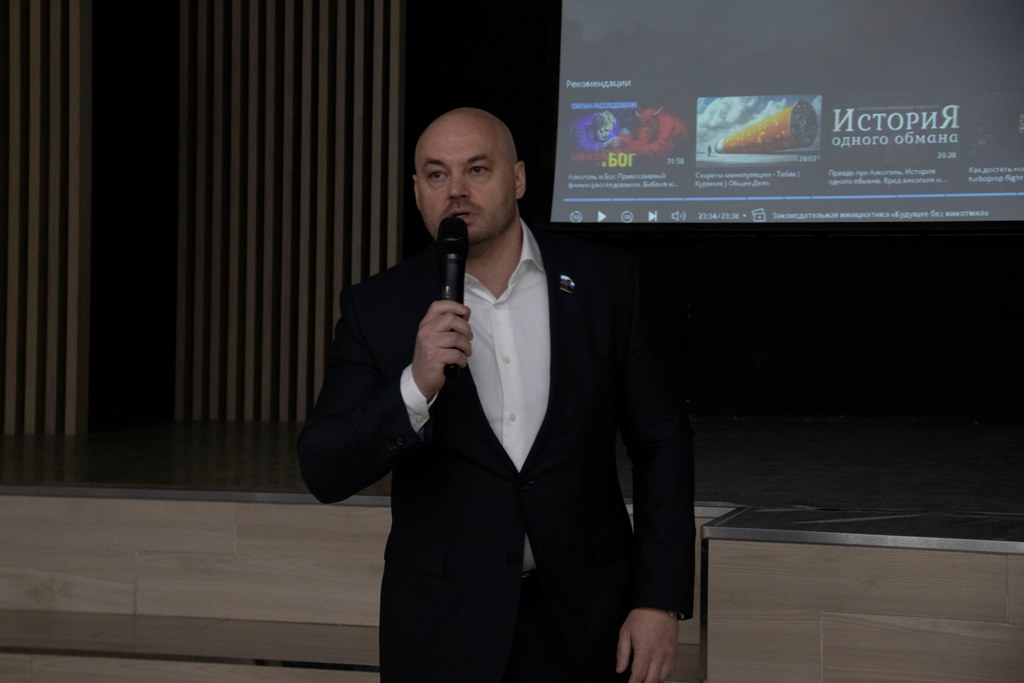 На встрече показали ролик от проекта «Трезвая Россия»: история парня, потерявшего здоровье из за онкологии.