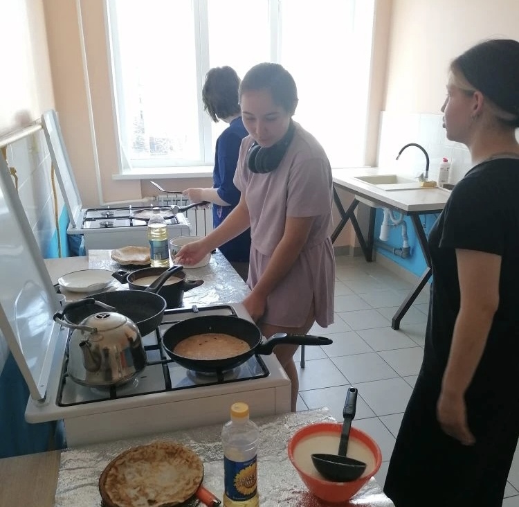 На Масленичной неделе в общежитии царила праздничная атмосфера. Ребята дружно собрались, чтобы по традиции пожарить золотистые блины, угостить друг друга и проводить зиму. За чаепитием и веселыми разговорами время пролетело незаметно!