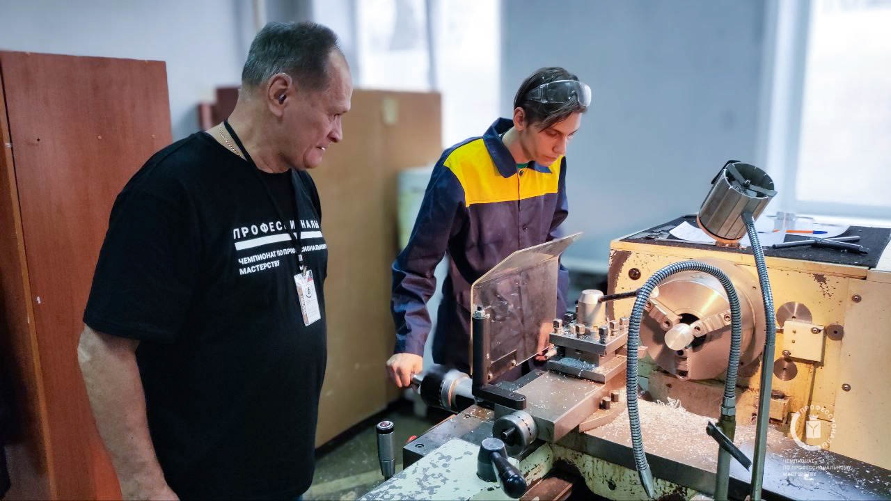 Компетенция «Работа на токарных универсальных станках»: участники выполняли задания модуля по обработке деталей из тяжелообрабатываемого сплава (олово + никель). Это задание требовало от них глубоких знаний и навыков в области токарного дела, а также умения работать с различными материалами.