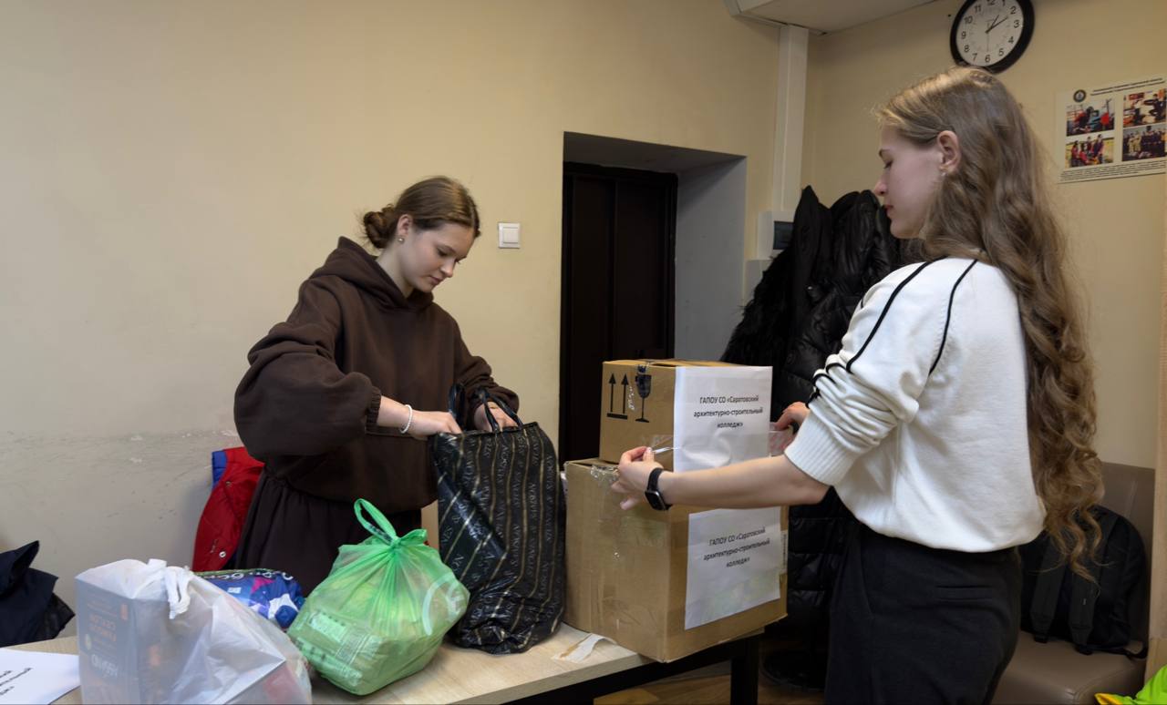 Студенты саратовского архитектурно - строительного колледжа организовали сбор гуманитарной помощи, направив необходимые вещи и продукты питания бойцам, находящимся на линии фронта.